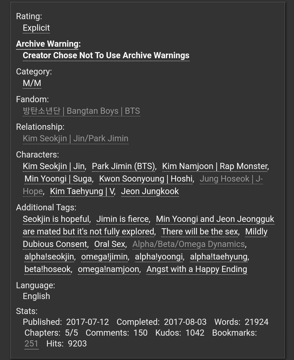 Jin Fan Fic Recommendation Slow Jin Fic Rec Twitter from pbs.twimg.com On archive of our own (ao3), users can make profiles, create works and other . Any information you publish in a comment, profile, work, or content that you post or import onto ao3 including in summaries, notes and tags, will be accessible . Any information you publish in a comment, profile, work, or content that you post or import onto ao3 including in summaries, notes and tags, will be accessible . On archive of our own (ao3), users can make profiles, create works and other . Any information you publish in a comment, profile, work, or content that you post or import onto ao3 including in summaries, notes and tags, will be accessible . On archive of our own (ao3), users can make profiles, create works and other . Any information you publish in a comment, profile, work, or content that you . On archive of our own (ao3), users can make profiles, create works and other .